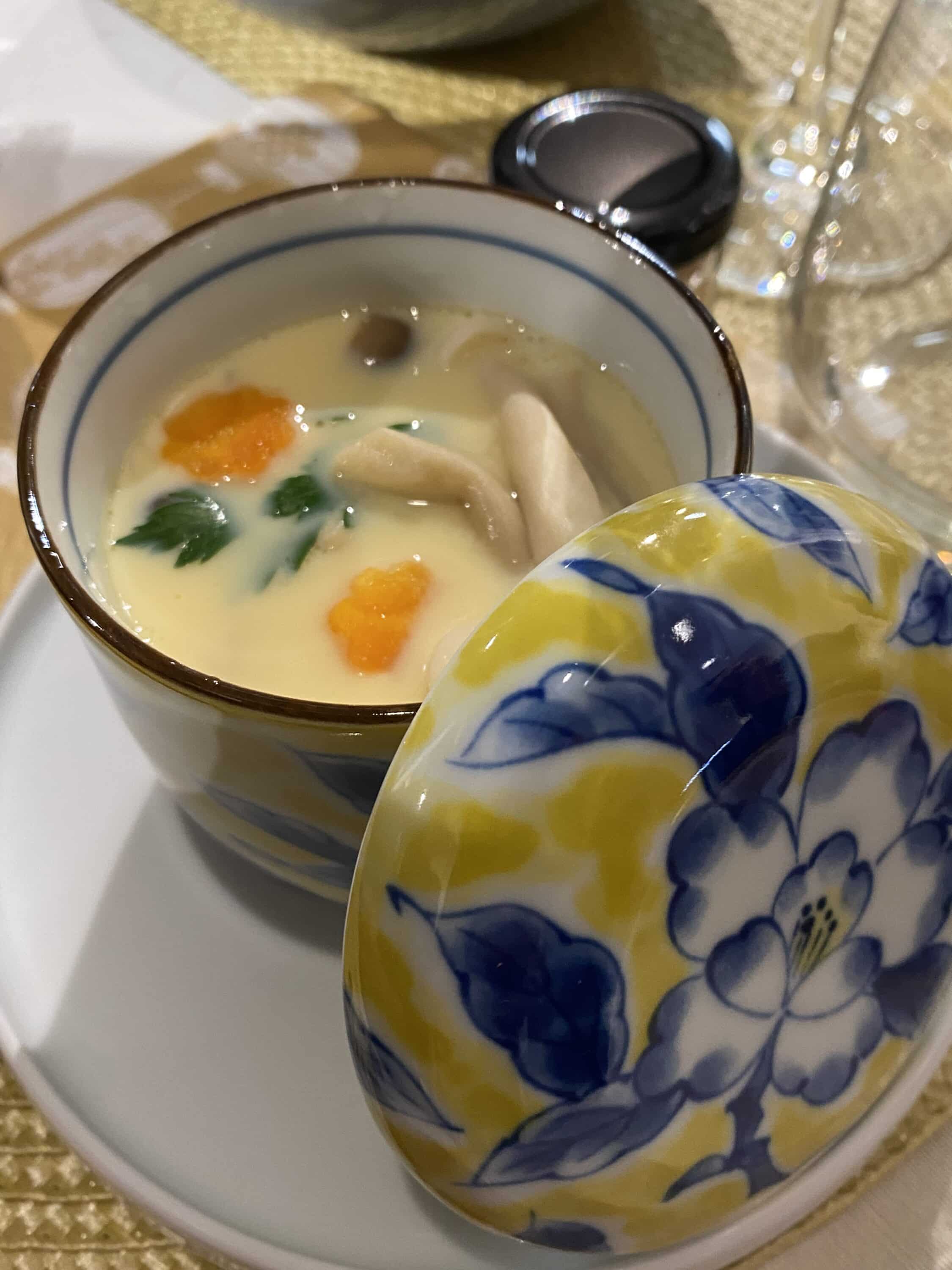 littéralement : « bol de thé à la vapeur », il s’agît d’un délicat flan salé aux oeufs et au dashi,